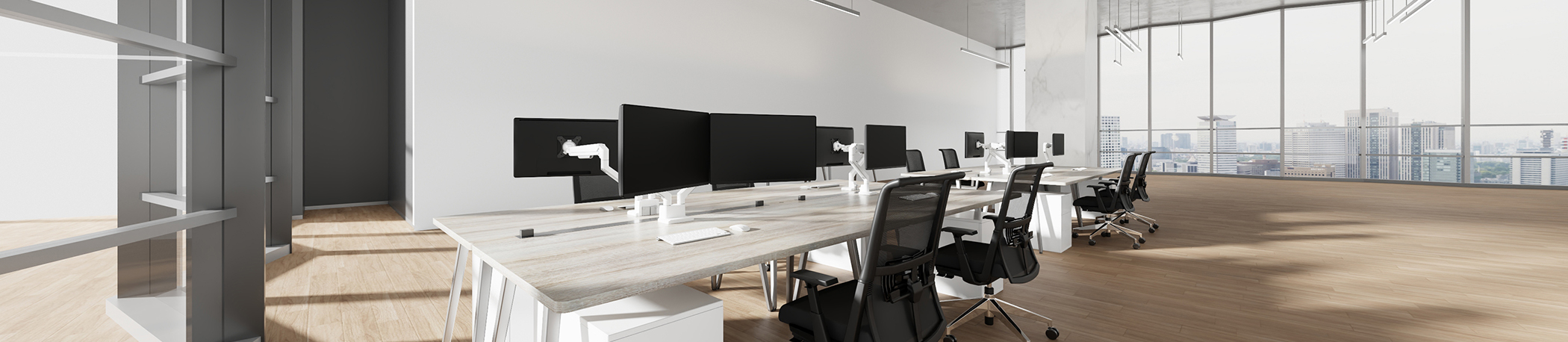 Maak kennis met de nieuwe NEXT Slim gasgeveerde monitorarmen die slank design combineren met praktisch comfort. Deze nieuwe ergonomische modellen zijn geschikt voor schermen tot 35” (enkel)/32” (dubbel) en kunnen eenvoudig in elke gewenste hoogte en kijkhoek worden gepositioneerd door de gasveer en full motion technologie. Tevens zijn de NEXT Slim bureausteunen voorzien van een handig 180°-stopmechanisme dat voorkomt dat de steun muur of scheidingspaneel raakt, wanneer deze in de buurt ervan wordt geïnstalleerd.
